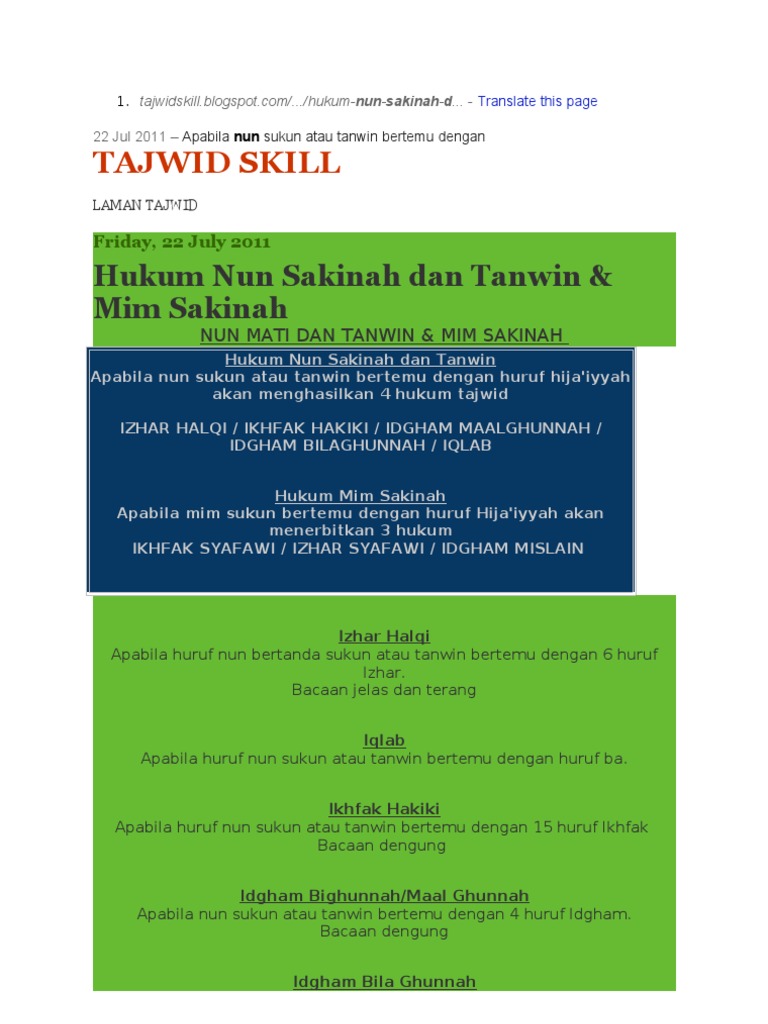 Annotate Aisyah Aqilah Binti Noor Ahmad Kamal from annotate.net Hukum nun mati dan tanwin. Hukum nun sakinah (mati) dan tanwin. Live worksheets > malay > pendidikan islam > tajwid > hukum nun sakinah. Jika setelah nun sakinah atau tanwin terdapat salah satu huruf hijaiah, maka ini akan memunculkan 4 hukum, yaitu Posted by pi2ipda at 9:17 pm. Topik 3 hukum nun sakinah, tanwin dan mim sakinah w 33 3.1.1 definisi nun. By sonali jannat 1684 views. Teknologi dan media pengajaran (edup2053) (encik biamin bin ahmad).