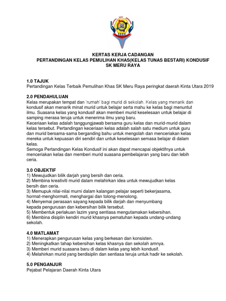 Please copy and paste this embed script to where you want to embed. Strategi pentadbiran dan pelaksanaan program pemulihan khas. 2.3 bagaimana lahirnya idea utk menjalankan program ini. Pembentangan kertas kerja/kertas makluman 2. Kertas kerja program (hanya dalam bahasa melayu kecuali nama khas & jika melibatkan pelajar a/bangsa ) (persatuan / kelab kertas kerja cadangan program lawatan sambil belajar ke shah alam dan melaka 1.0 pendahuluan institusi asrama sinonim.